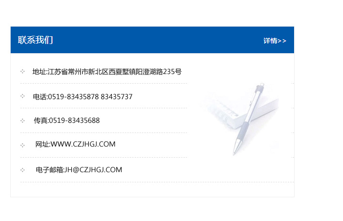 地址:常州市新北區友邦商務大廈1幢16、17層  電話:0519-85101652  傳真:0519-85112595  郵編:213022  網址:www.cz-jiayue_cn.hntaowa.com  郵箱:xiajifengaa@163.com